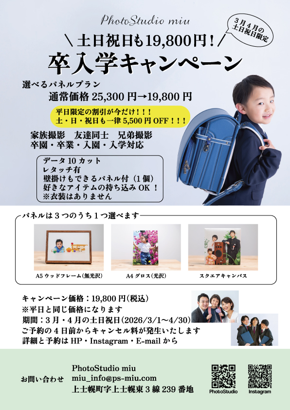 土日も同一価格で撮影できる期間限定キャンペーンです!