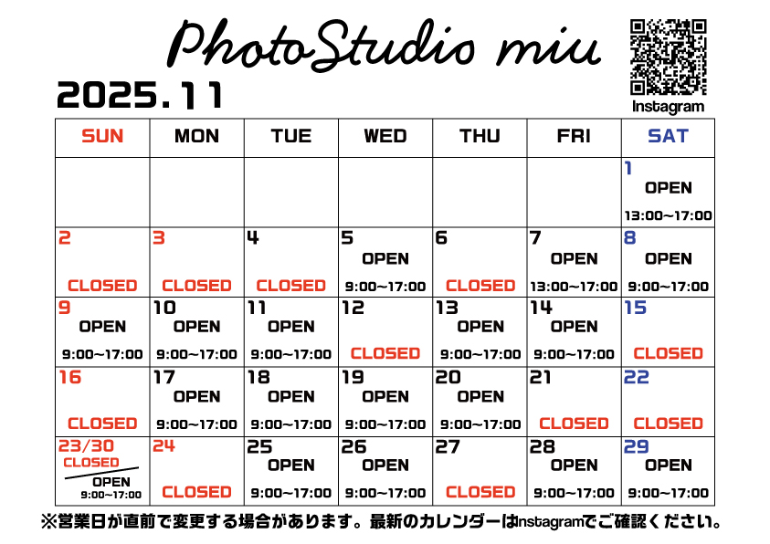 HOME > お知らせ > お知らせ 10月の営業カレンダー 2024/10/13 10月の営業カレンダーです。 10月はAMのみ、PMのみでオープンしている日も多々あるので、カレンダーでご確認のうえお越しください。 Post Share Hatena Pinterest LINE URLコピー -お知らせ -miu, PhotoStudio, PhotoStudio miu, フォトスタジオ, 上士幌